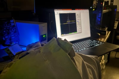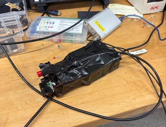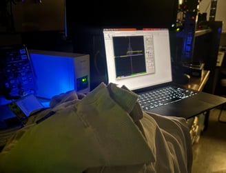 My first step here was creating this light tight box using CAD through multiple prototypes, until I created my final version, which is shown on the left. The photon detector goes into the box and is then taped around to ensure that no photons leak through. There is a 1.5 millimeter hole on the front side where the photons from the blinking LED are meant to come in, as the detector itself is only 1.5 millimeters. The graph shown is the photons detected in number groups, 1.5, 3.5, etc plotted against how many times that amount of photons was detected. For example, around 1.5 photons was detected 2000 times over my 400 m/s period. The different colors represent different voltages powering the LED through a waveform generator 3 V, 4 V, and 5 V. Where the pink represents the background photons to be subtracted for the final graph representation. The data that I gathered in this experiment was used to learn how to use an oscilloscope, waveform generator, single photon detector, and all of the software that I used to analyze the data and create graphs, so that I could move on to the next phase of this project.