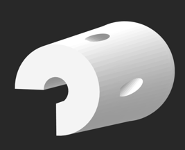 This is the parachute holding device that I created using CAD the way that it works is gunpowder is placed through the hole at the bottom of the cyliner, then the hole is capped and lit off through a machine internally, when this lights the parachute, which is attached in the nose and the hook on the holding device will then expand. This is intended to make the rocket land gracefully in case of emergency.